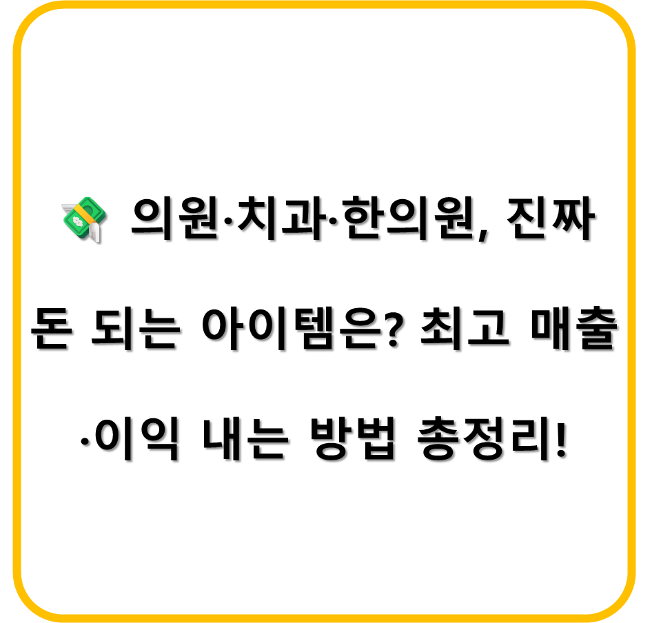 이번 글에서는 의원, 치과의원, 한의원의 실제 최고 매출과 이익 사례를 정리하고, 어떤 아이템(진료 분야)을 선택해야 저 정도의 매출이 가능한지 구체적으로 살펴봅니다. 😊