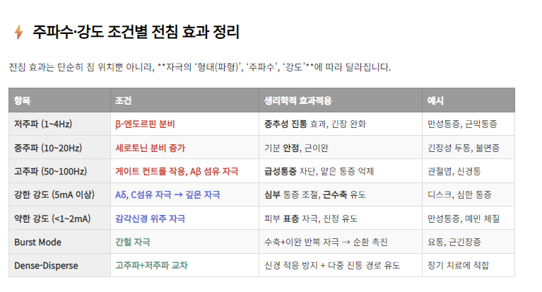 ⚡ 주파수·강도 조건별 전침 효과 정리