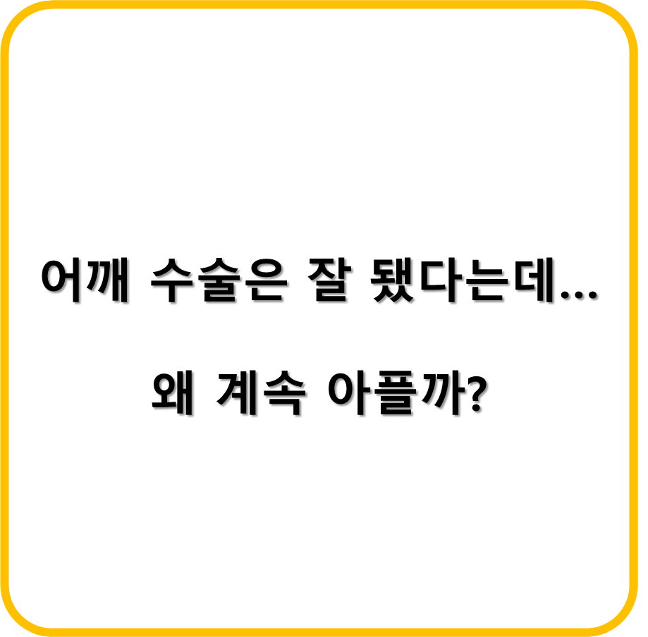 6개월~1년이 지나도 통증이 남거나 팔을 올리기 힘든 증상을 겪곤 하죠. 수술은 구조를 복원하지만, 통증과 기능 회복은 전혀 다른 이야기입니다.