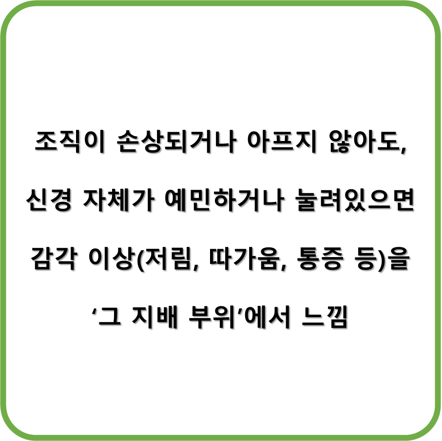 - ์กฐ์ง์ด ๋ฉ์ฉกํด๋, ์ ๊ฒฝ์ด ๋๋ฆฌ๊ฑฐ๋ ์ผ์ฆ์ด ์๊ธฐ๋ฉด ๐ ๊ทธ ์ ๊ฒฝ์ด ์ง๋ฐฐํ๋ ์์ญ ์ ์ฒด์ ์ด์๊ฐ๊ฐ์ด ์๊น๋๋ค.
