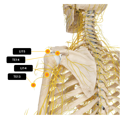 견우혈 LI15, 견료혈 TE14, 비노혈 LI14, 노회 TE13