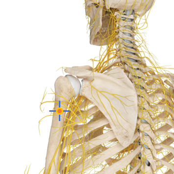 노회 (TE13) : deltoid muscle의 뒤 모서리와 humerus의 내측이 교차되는 지점. 0.5~1.0寸 (1.5~3.0 cm) 직자 / 0.5~1.0寸 (1.5~3.0 cm) 사자한다. deltoid muscle의 뒤 모서리와 humerus의 내측이 교차되는 지점에 자침한다. *주변 신경 및 혈관을 주의한다. *상완을 외전시킨 상태에서 자침할수도 있다