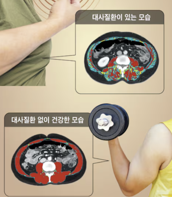 > 당뇨 : 근육의 질이 감소하면 인슐린 반응이 감소하고 혈당관리가 힘들어진다