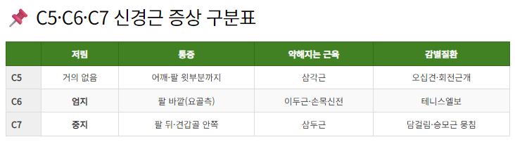 📌 C5·C6·C7 신경근 증상 구분표