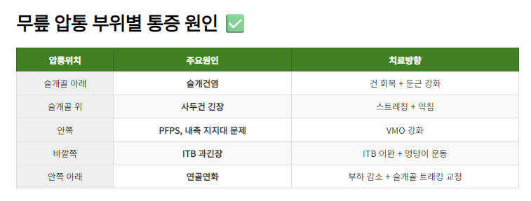 5️⃣ 슬개골 아래·안쪽이 쑤시는 느낌