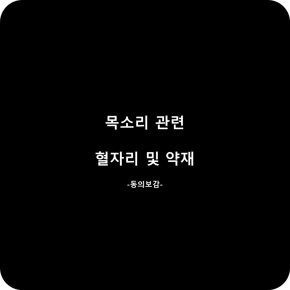 목소리 관련 혈자리갑자기 목소리가 나오지 않는다 > 천돌 / 신문, 용천 / 합곡, 양교, 통곡, 천정, 기문, 지구, 용천목으로 올라오는 느낌이 있으며 목소리가 나오지 않는다 > 조해인후가 부어서 목소리가 나오지 않는다 > 풍륭숨을 헐떡이며 목소리가 나오지 않는다 > 부돌, 염천말을 잘 못함 > 합곡, 용천, 양교, 통곡, 천정, 기문, 지구 / 통리 / 염천 목소리 관련 약재목소리를 나오게 한다 > 석창포, 통초, 행인, 귤피, 배, 감, 호두기름따듯하게 한다 + 목소리를 나오게 한다 > 계지*행인 : 목소리를 좋게 하는 경우 껍질을 벗기고, 뾰족한 끝을 제거한 뒤에, 우유에 달여 꿀을 섞어 복용한다.*계지 : 가루내어 행인과 함께 꿀에 반죽해서 복용한다. *해당 글은 의학적 판단이나 진료행위로 해석..